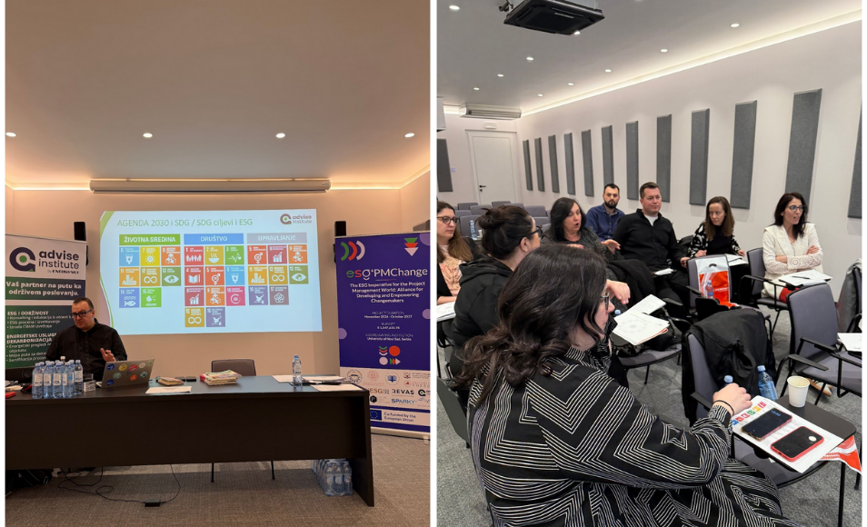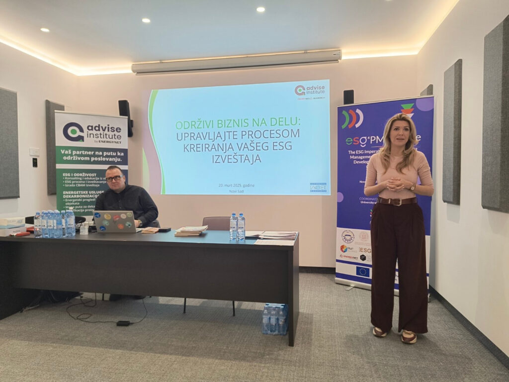 The ESG4PMChange project was presented and promoted during the professional training “Sustainable Business in Action: Manage the Process of Creating Your ESG Report”, held in Novi Sad and organized by Energy Net DOO and Advise Institute DOO.
