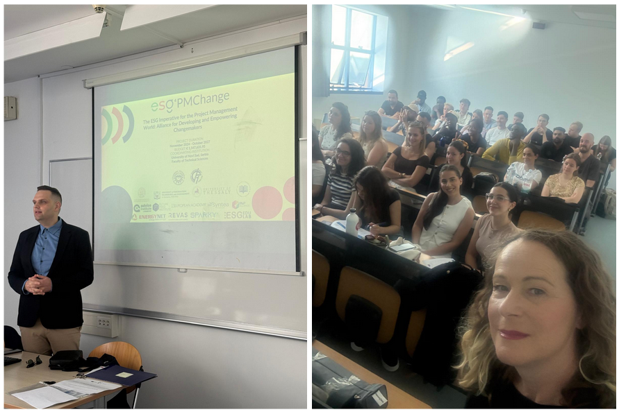 The presentation was delivered to students from the Institute for Corporate Management (Institut für Unternehmensführung), Alpen-Adria-Universität Klagenfurt, and focused on the growing importance of ESG standards in contemporary project management practices. Participants were introduced to the objectives, scope, and educational focus of the ESG4PMChange project, with particular emphasis on how ESG competencies can support responsible decision-making and long-term value creation.