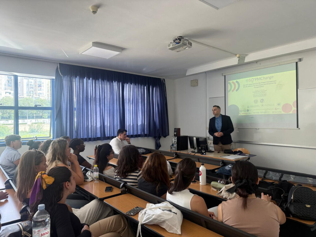 Within the framework of the Short Time Study Abroad in SEE/CEE – Excursion 2025 programme, international visiting students had the opportunity to explore key ESG concepts and their application in project management through a dedicated ESG4PMChange project presentation. The session was hosted at the Faculty of Economics, Business and Tourism, University of Split, as part of the students’ international learning experience focused on contemporary business and sustainability challenges.